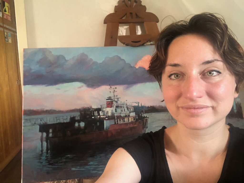 Let me introduce you to my largest painting. It is a view on Cardiff Bay from Penarth, the scenery which regularly opened to me on my way to work across the Barrage. We lived approximately ten minutes away up the hill. It looks beautiful there – fresh sea wind, bridge which lifted up for boats to be able to go through, wonderful view across the Bristol Channel. However I must say, cycling this road every day to work turned out not that romantic at all, rather to be proper ordeal. Through the storm and rain, darkness and wind and often times with empty battery in my bike light… Adventurous indeed.