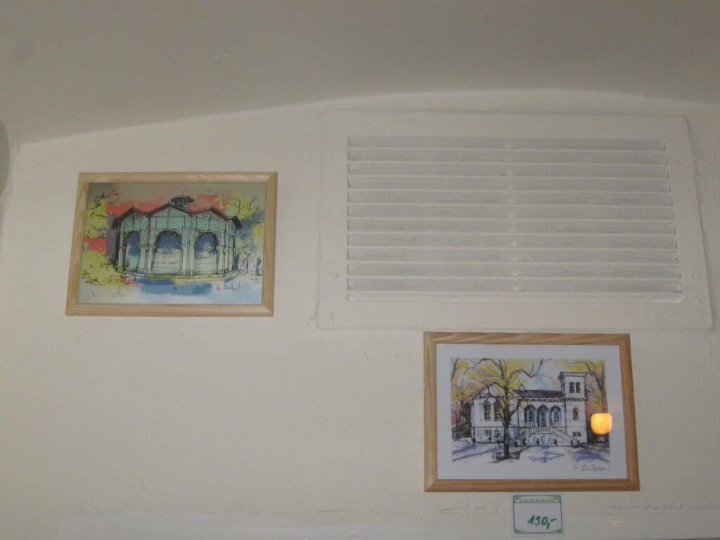 They were coloured prints of my drawings of significant architectonic sights one could see around in Prague city part called Letna. I have always struggled with a straight lines and perspective, this was a fun on one hand, but also a pain on the other hand.