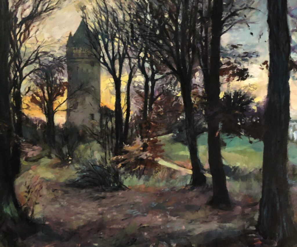 My biggest mistake was to start with a pure black underpainting. I don’t know, what I was thinking. Making it simply black has been just stupid and I did not achieve by that any nice patterns to glaze over. Then I realised, lightning was fairly difficult. I wanted dramatic sky, but one still needs to have foreground sort of interesting, not just a grey blob. And then those trees! By that stage was I honestly considering just pushing my fist through the canvas while screaming something terrible (I was stopped only by the worry that I could confuse and scare neighbours and their two newborn babies. Eh, age made me soft… )