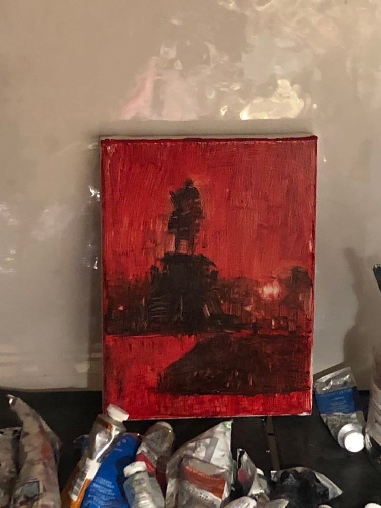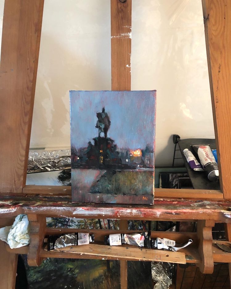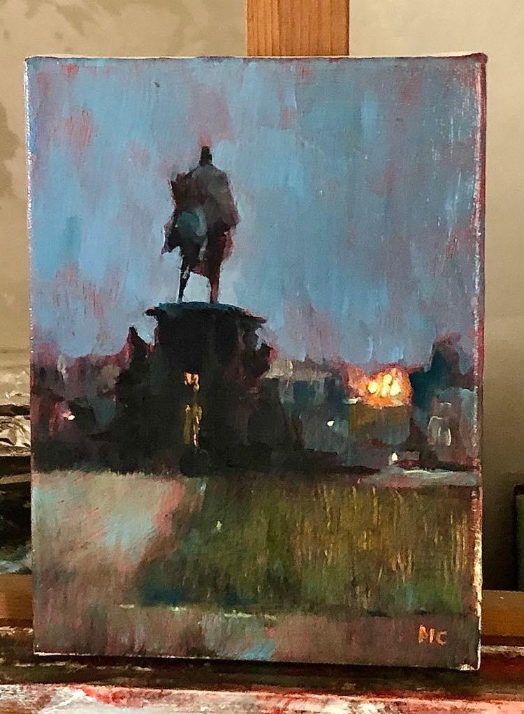 I have chosen my favorite red underpainting just for the way it works nicely with blue and grey when I need to paint the dark. Without that I would probably go crazy trying to mix all the shades on my palette, but red underpainting makes the life much easier. Nobleman also seemed not to mind.