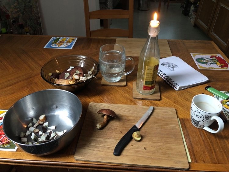 So I assume this trip was successful, I made some photos so I can paint and in addition to that I found today’s dinner. There are more mushrooms deeper in the forest in the north, so when I am mentally prepared for that I will go there. Last time I went there I found some weird bullets, so I am little bit nervous about going back. But hey, other than pigs, wolfs, witches or criminals, what could possibly happen?